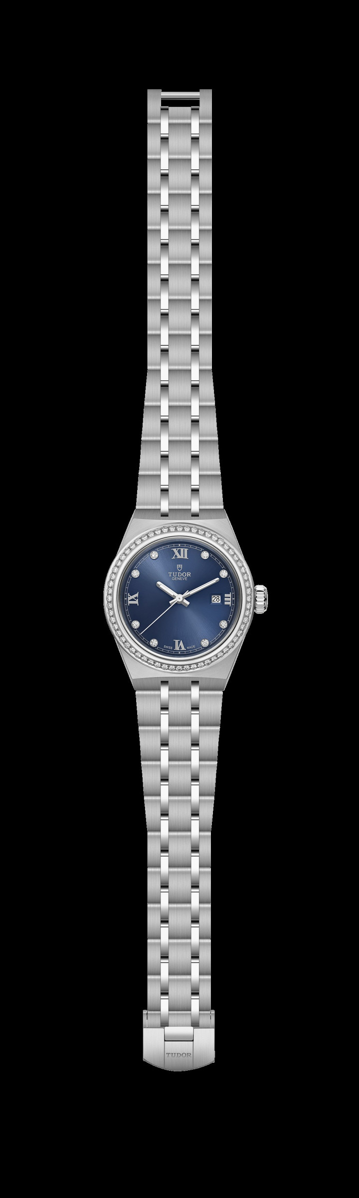 帝舵皇家系列(TUDOR Royal)配备一体式表带及标志性的坑纹外圈,搭载自动上链机芯,兼具运动气息与时尚风格,灵活百搭且价格相宜,是品牌的经典之作。如今,帝舵皇家系列推出全新藍色表盘,以此致意与品牌代言人成毅携手共创的敢为历程。同时,表盘及外圈均镶嵌精美钻石,以万众瞩目的耀眼光芒,为天生敢为者提供一款完美之选。